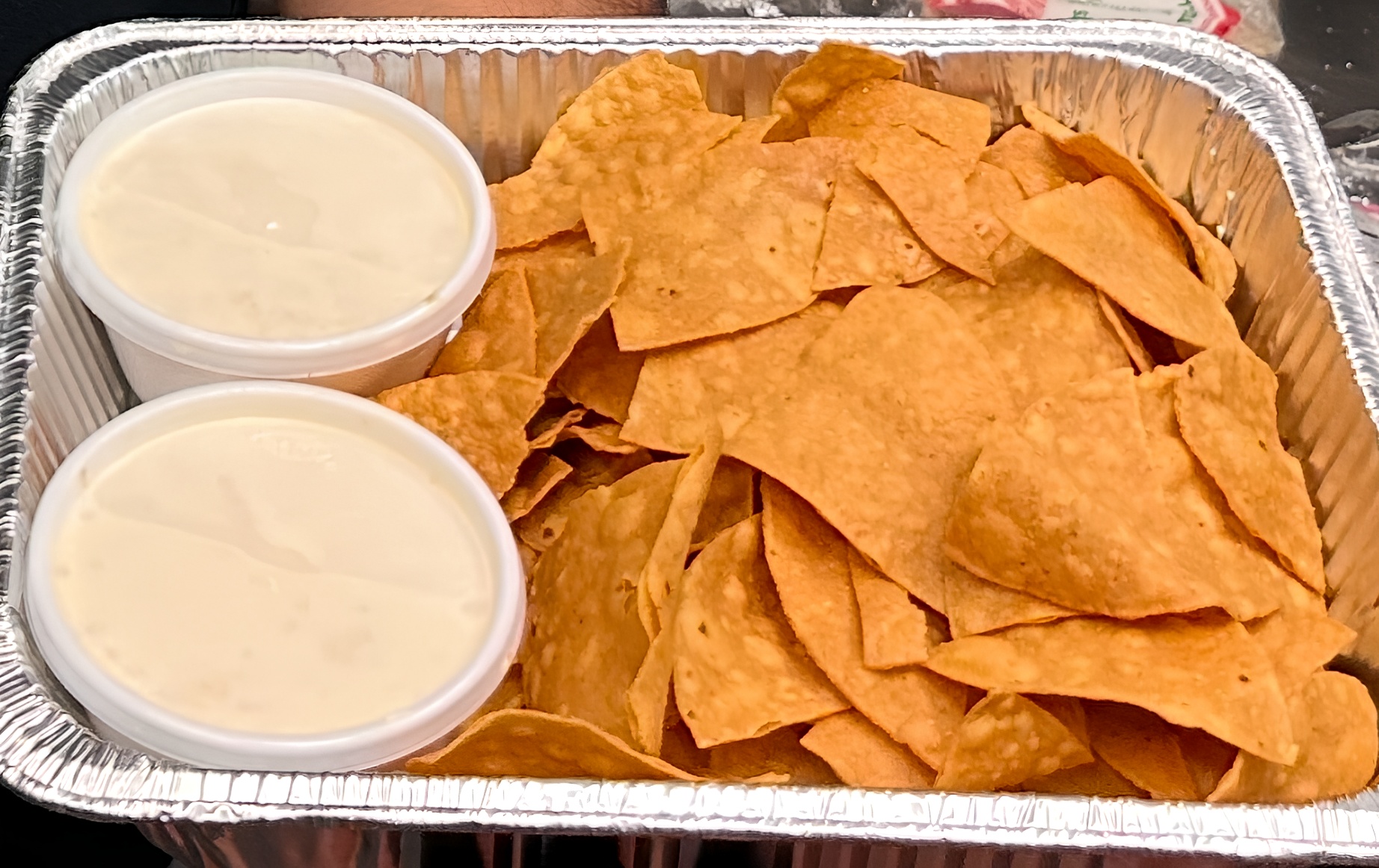 (Must be ordered 24hrs in advance) Tray of Freshly made Chips & In House Made Queso Dip. Serves 4-6.