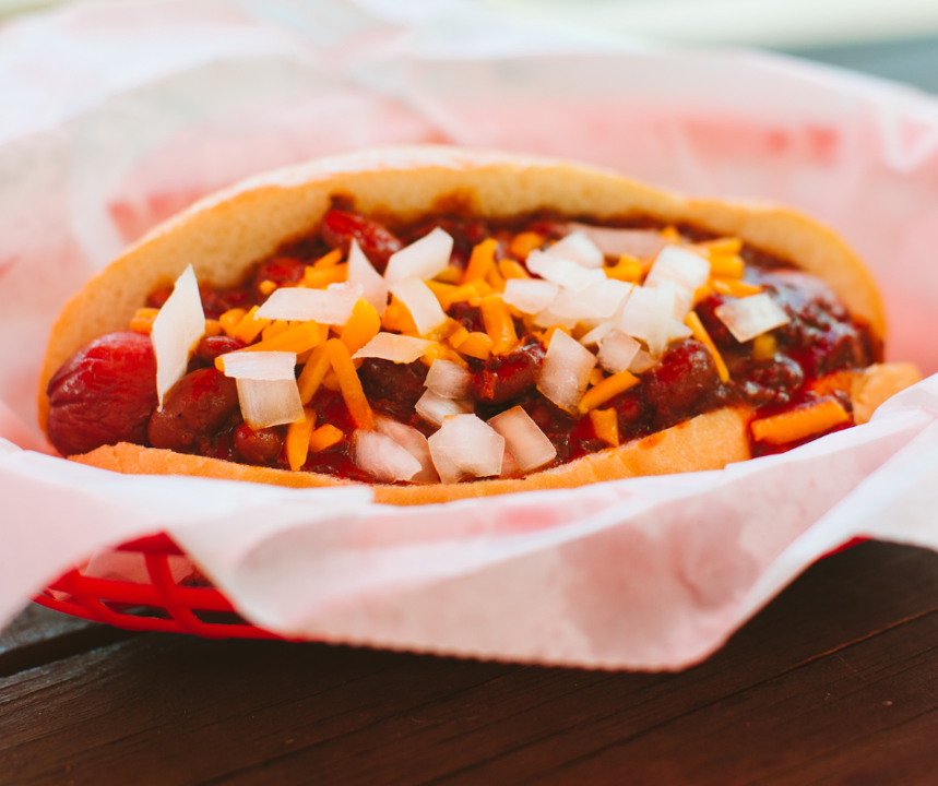 Footlong dog smothered in chili, topped with shredded cheddar and your choice of raw, sauteed, chipotle or fried onions.