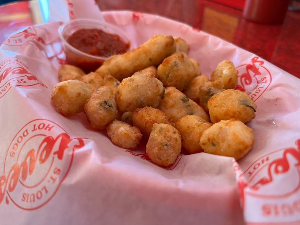 Fried Garlic Cheese Curds with your choice of Ranch or Marinara