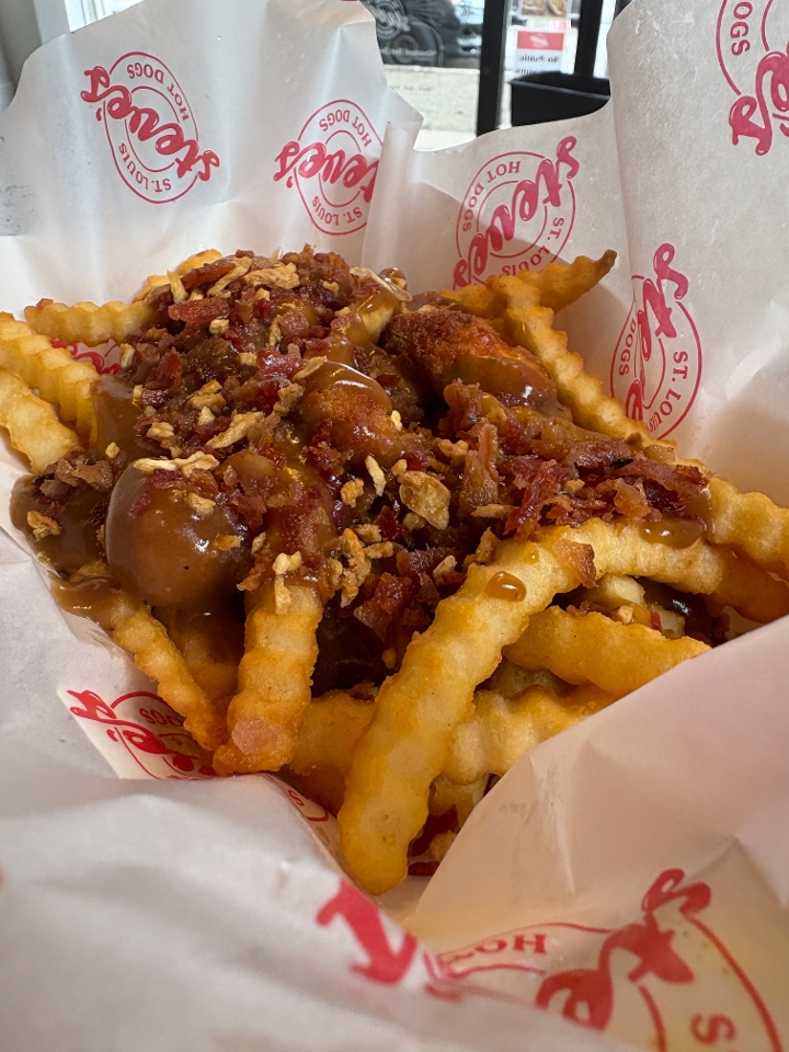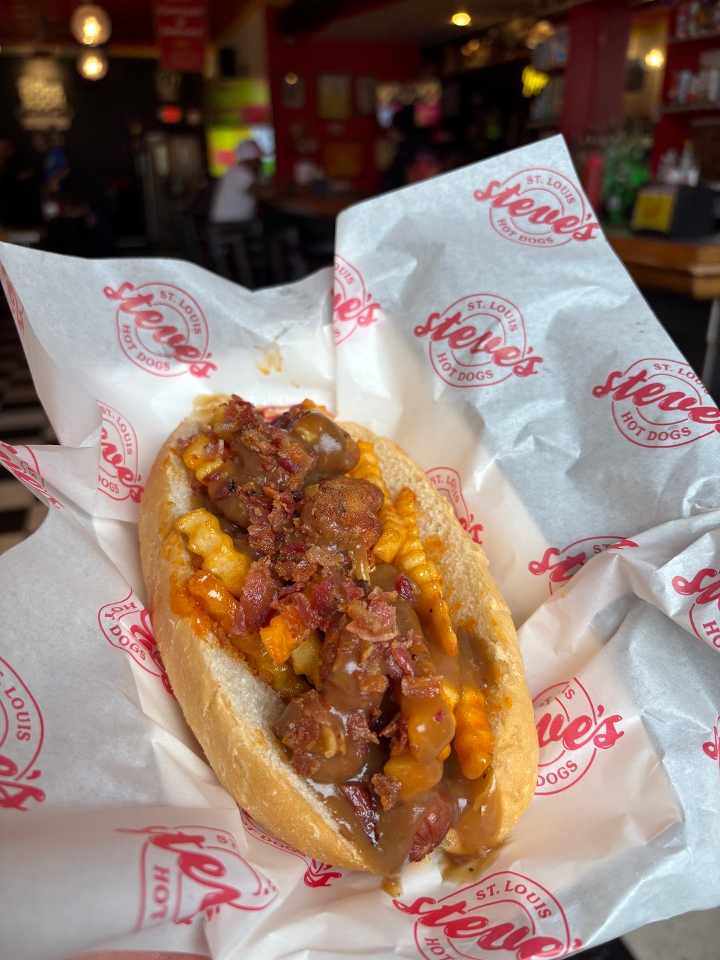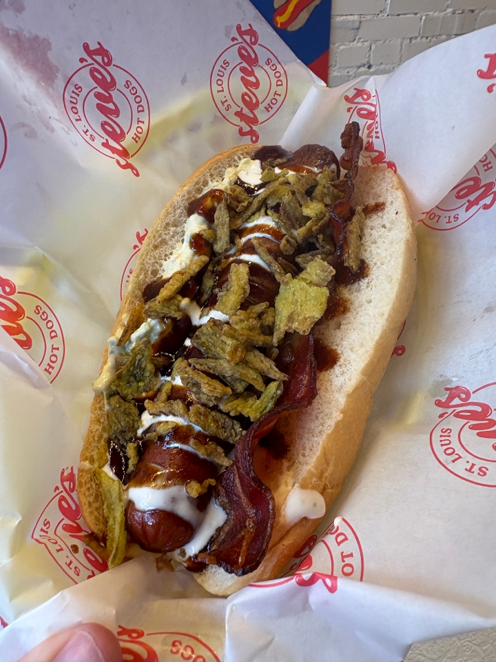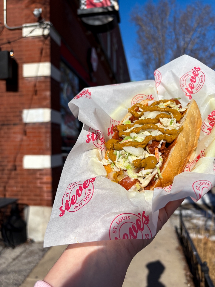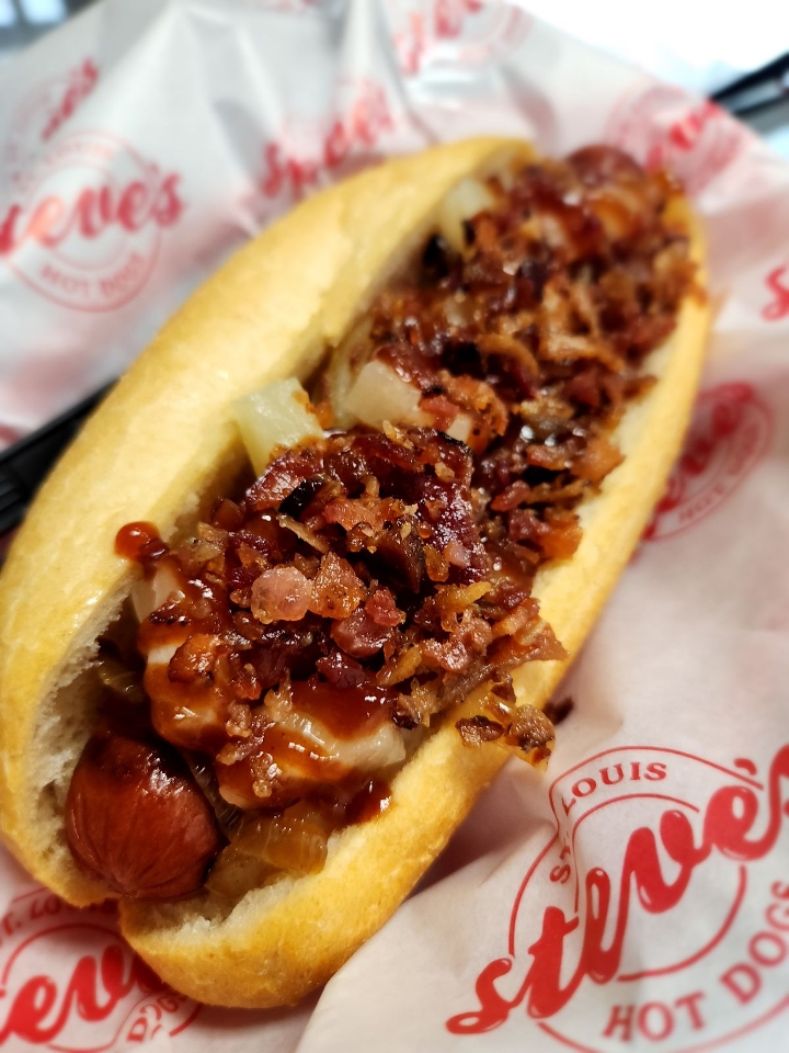 Steve's Hot Dogs, founded by musician Steve Ewing of The Urge, is the home of the Official St. Louis Style hot dog. Voted Best Hot Dogs in St. Louis, the smoked all-beef hot dogs at this legendary local eatery are second-to-none. It all starts with a fresh-baked hearty companion bakery bun topped with a cold smoked and grilled Nathan's Famous dog, each one topped to perfection with creative combinations of toppings. Steve's Hot Dogs is also known for some of the best smashburgers you're going to find. Steve's award-winning smashburgers are made from a blend of chuck, angus and sirloin - try it classic style or topped to the hilt. Pair with "St. Louis's Best French Fries" (St. Louis Magazine) or one of a selection of local beers and brews for the perfect lunch or dinner.