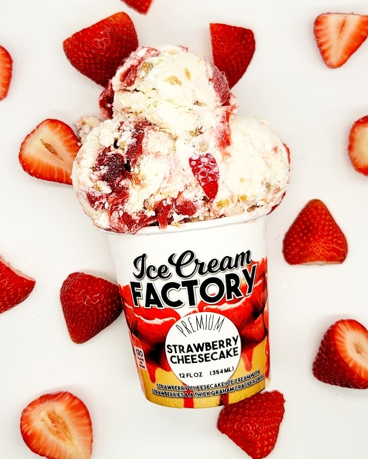 Strawberry cheesecake ice cream with strawberries & a graham cracker swirl