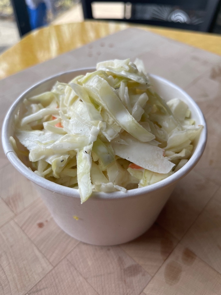 Smoked dog topped with beef chili, creamy coleslaw, diced onions and smoked pepper mustard.