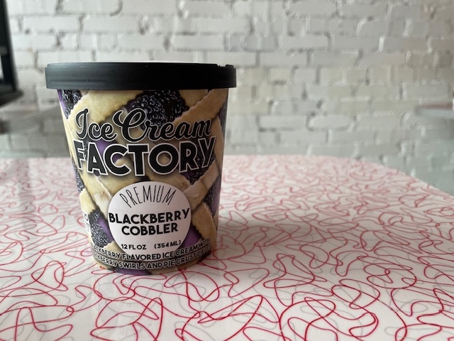 Blackberry ice cream with blackberry swirls and pie crust pieces