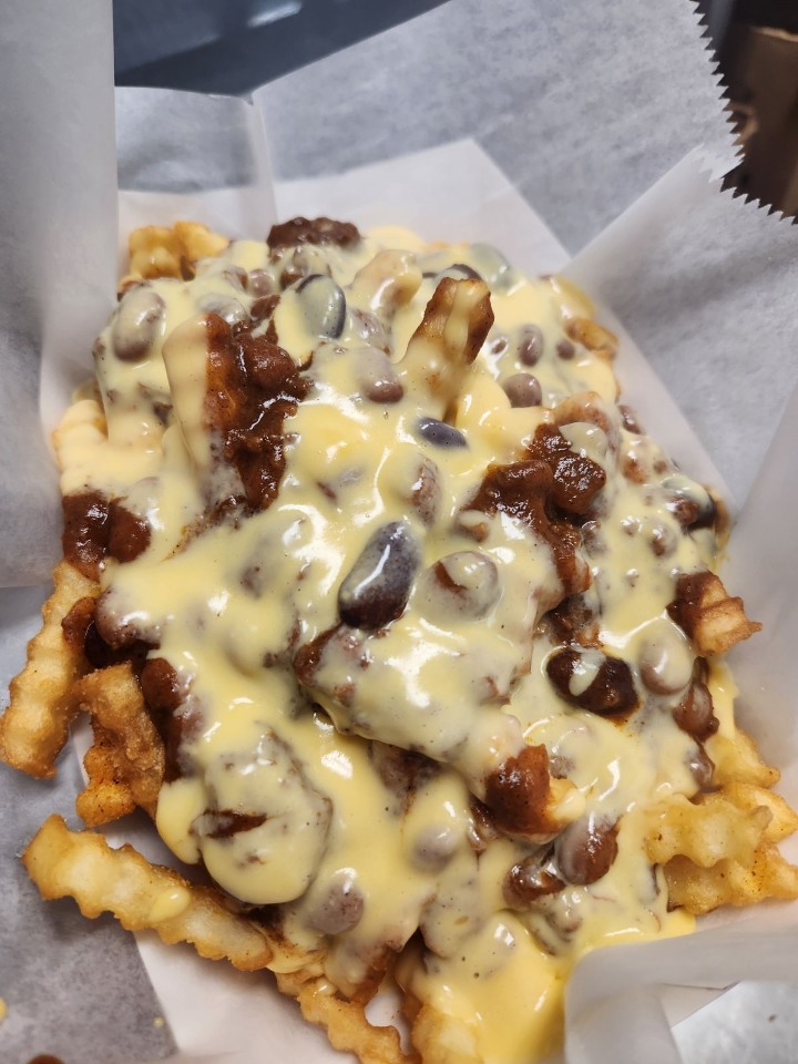 Crinkle fries topped with Steve's Famous Chili and our house made creamy cheese sauce.