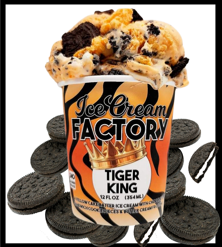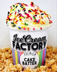 Yellow cake batter ice cream with buttercream frosting & chocolate cookie pieces