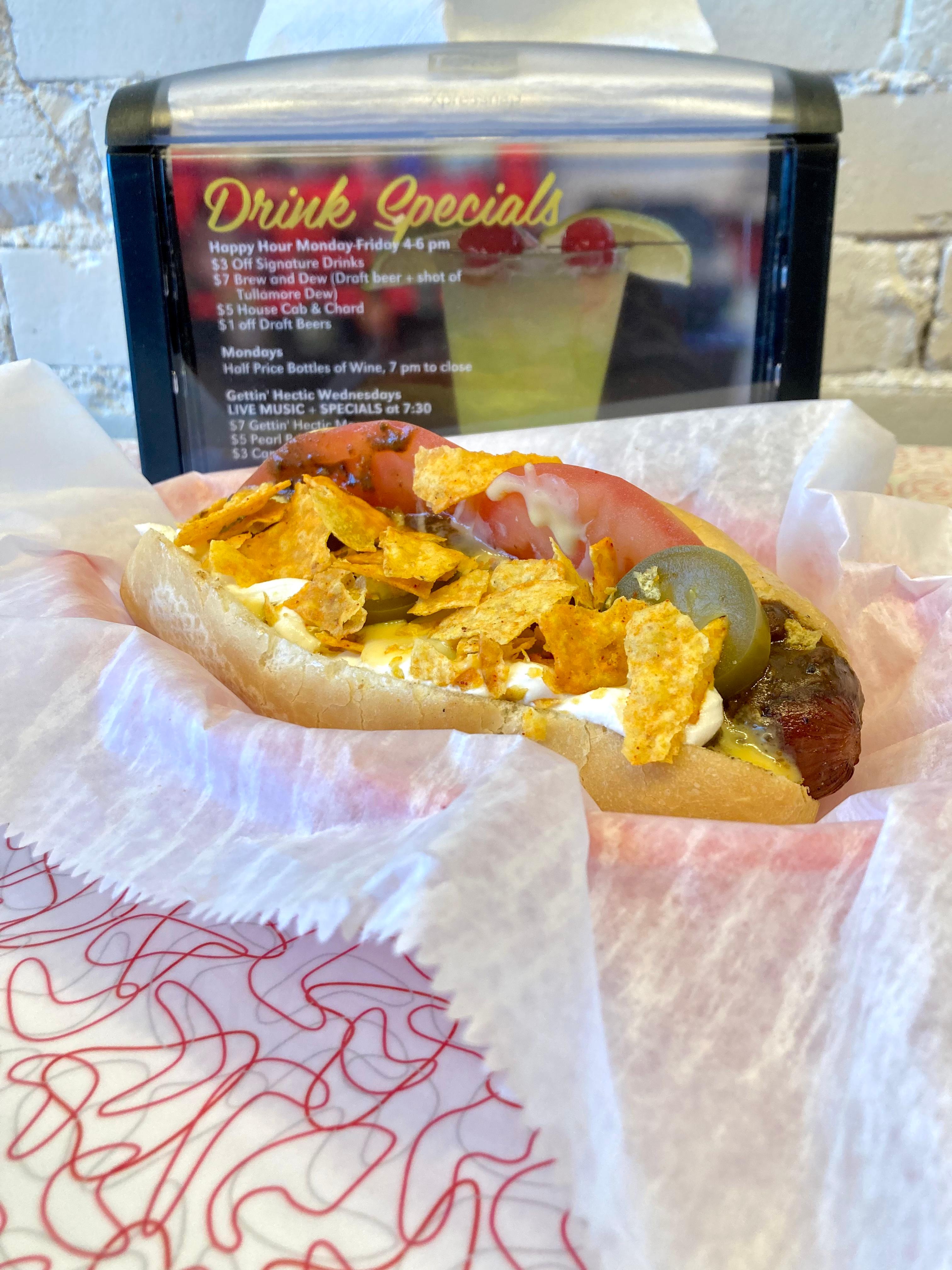 Our famous smoked dog dressed with all the Chi-Town goodies - tomato, mustard, relish, onion, pickle, celery salt and sport peppers.