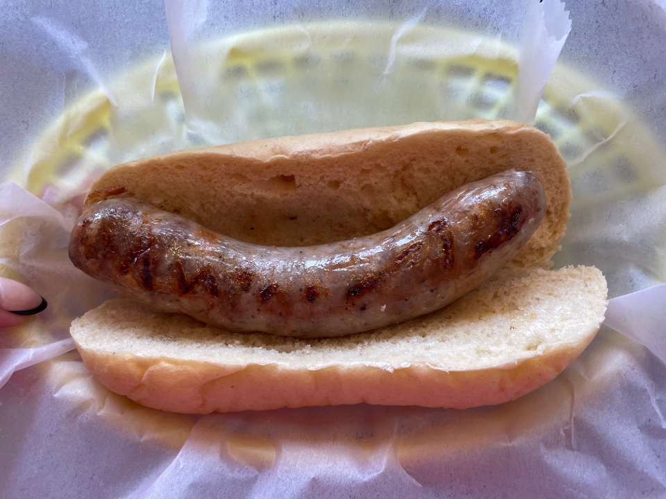 Plain grilled G&W bratwurst with your choice of toppings from our add-on menu