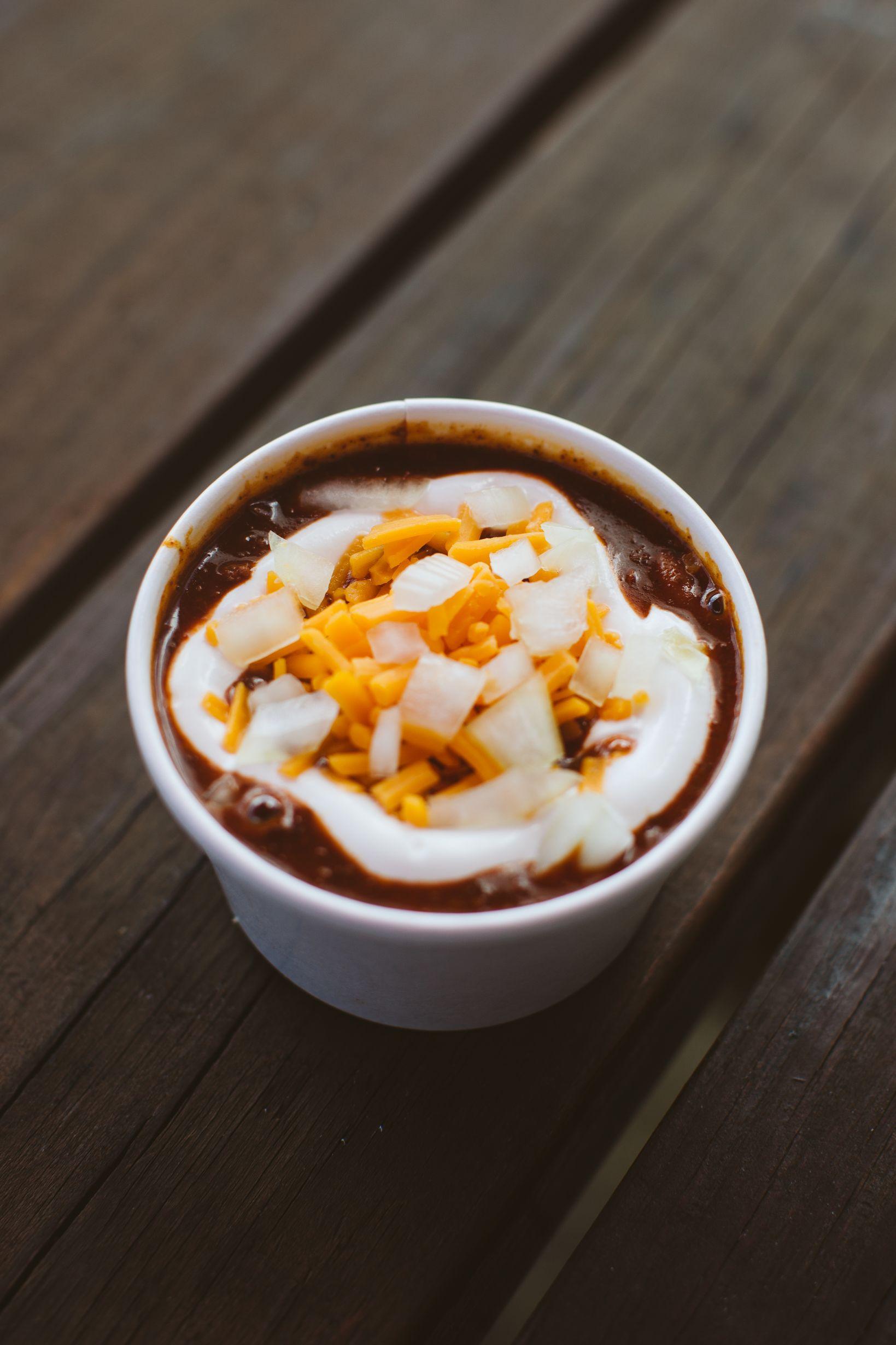 Our house-made vegan chili topped with vegan shredded cheddar and your choice of raw, grilled, fried or chipotle onions