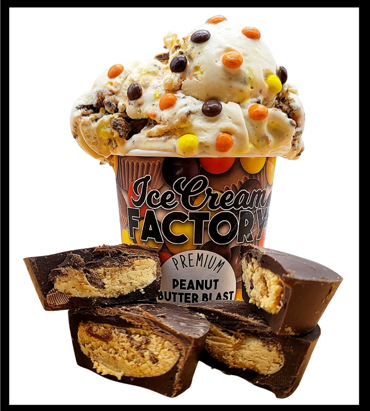 Peanut butter ice cream with peanut butter cups & chocolate covered peanut butter pieces