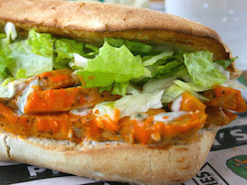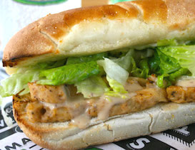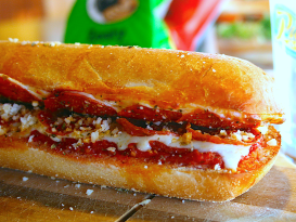 Grilled chicken strips, marinara, giardiniera peppers and provolone cheese on your choice of white or wheat bread.