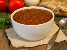 Hearty vegetarian chili with brown lentils, tomatoes, onions, jalapeno peppers and select chilies.