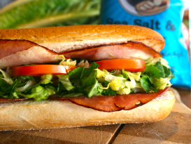 Bacon Lettuce Tomato Smoked bacon, provolone cheese, lettuce, tomato and mayo on your choice of white or wheat bread.