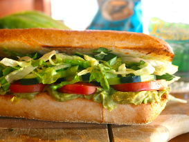 Double Provolone topped with tons of cucumbers, avocado, lettuce, tomato, and mayo on your choice of white or wheat bread.