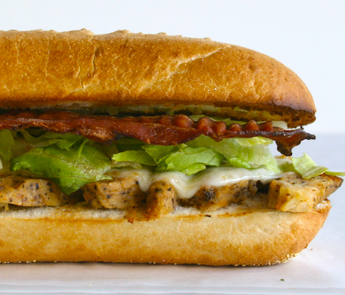 Grilled chicken strips, bacon and provolone, topped with our signature Asiago Caesar dressing on your choice of white or wheat bread.