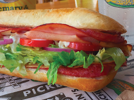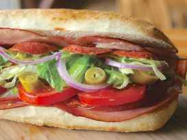 Genoa salami, capicola, pepperoni, ham, provolone cheese, mayo, lettuce, tomato, onion, touch of V&O and Italian seasoning on your choice of white or wheat bread. Spice it up by adding Giardiniera Peppers for .79