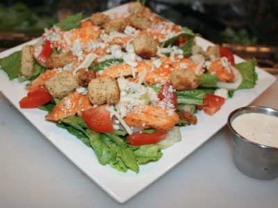 Grilled buffalo chicken on a bed of romaine lettuce with bleu cheese, mozzarella, onions, tomatoes, and garlic croutons. Standard Dressings: Classic Ranch