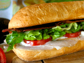 Hickory smoked gluten free honey turkey breast, smoked bacon, provolone cheese, lettuce, tomato and mayo on your choice of white or wheat bread.