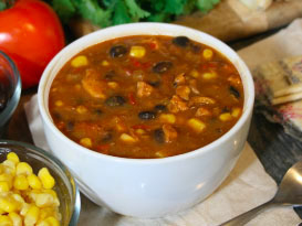A delicious blend of the southwest with chicken, diced tomatoes, black beans, onions, corn, red bell peppers, green bell peppers, green chilies, zucchini, and jalapenos.